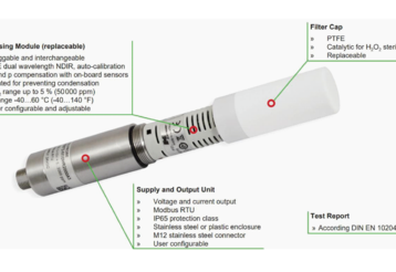 Ogrevanje preprečuje kondenzacijo znotraj senzibilne glave, zato je EE872 primeren za uporabo v okolju z visoko vlažnostjo in kondenzacijo. Modularna zasnova olajša zamenjavo modula.