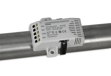 Nadzor kondenzacije s tipalom EE046, pomaga pri preprečevanju kondenzacije na ohlajenih ceveh in drugih kritičnih hladnih točkah. Primeren je za namestitev na ravne površine in cevi s premerom največ 50 mm.
